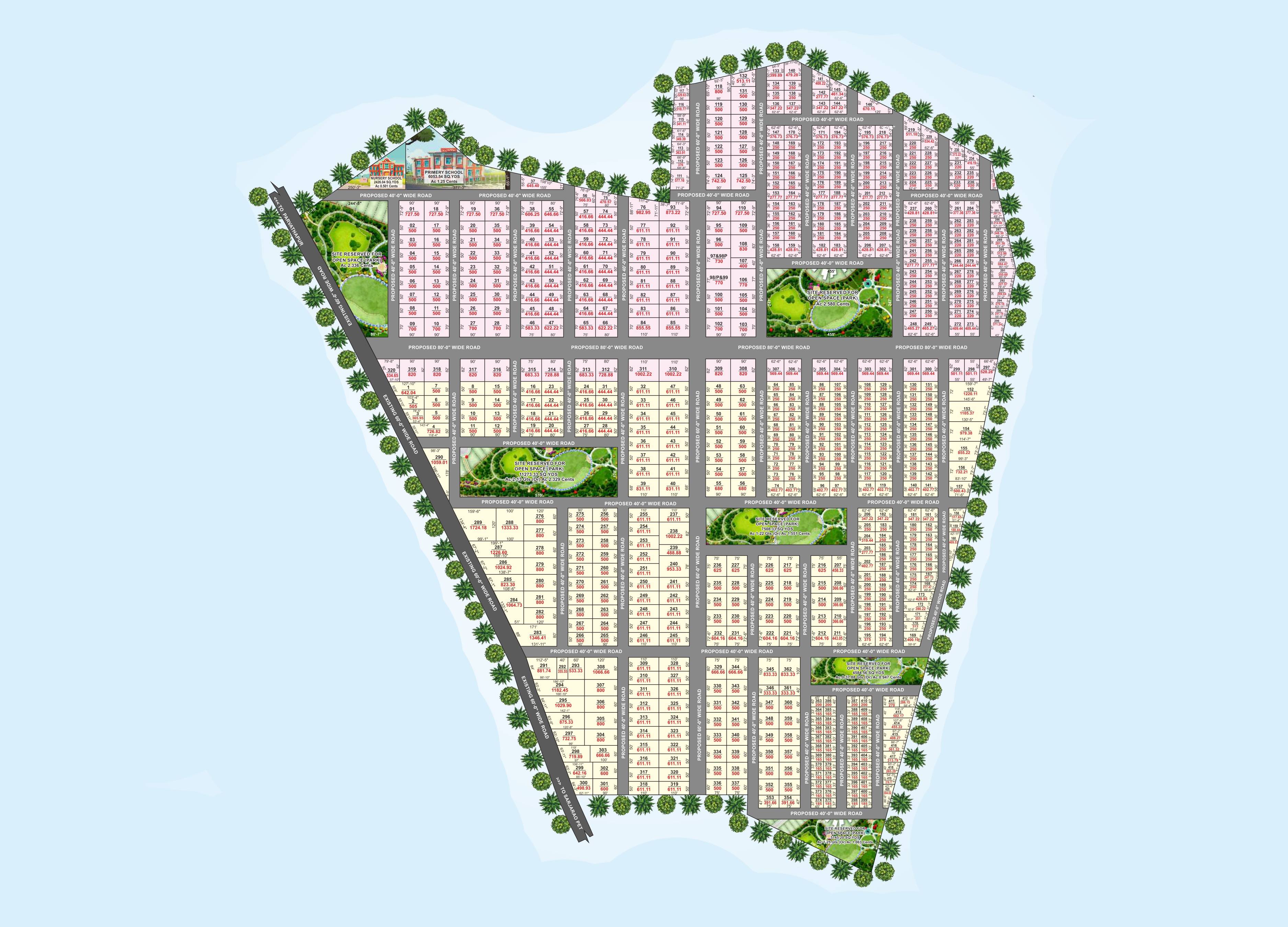 80', 40' Black Top Roads